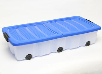 Säilytyslaatikko pyörillä 55L, suunniteltu erityisesti sängyn alle. Laatikon koko 20x49xcm. Curverin monikäyttöinen sängynaluslaatikko pyörillä. Läpikuultavuuden ansiosta näke mitä laatikko kytkee sisäänsä.