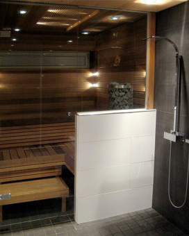 Kaikki tuotteet valmistetaan aina . Toteutamme asiakkaan lasiseinät saunan ja pesuhuoneen väliin heidän vaatimustensa ja mittojen mukaan. Lasi on yleensä 8mm karkaistu lasi turvalasina kestäen kiukaan aiheuttaman lämmön ja täyttäen turvalasivaatimukset. Lasiratkaisut ovat ns karmittomia, jolloin saadaan enemmän avaruutta .